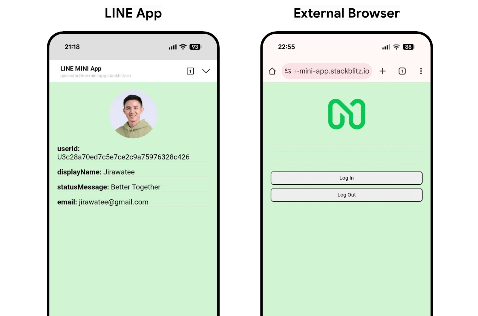 หนึ่งในข้อดีของการพัฒนา LINE MINI App ก็คือการที่ LINE Login ได้เข้ามา Integrate ร่วม ทำให้เราสามารถยืนยันตัวตนผู้ใช้งานได้ง่าย ไม่ต้องพัฒนาเรื่อง Authentication เอง และนอกจากนี้เรายังสามารถใช้งานฟีเจอร์ต่างๆกับ External Browser บนสมาร์ทโฟน ได้เทียบเท่ากับการใช้งาน LINE MINI App กับแอป LINE บนสมาร์ทโฟนเช่นกัน