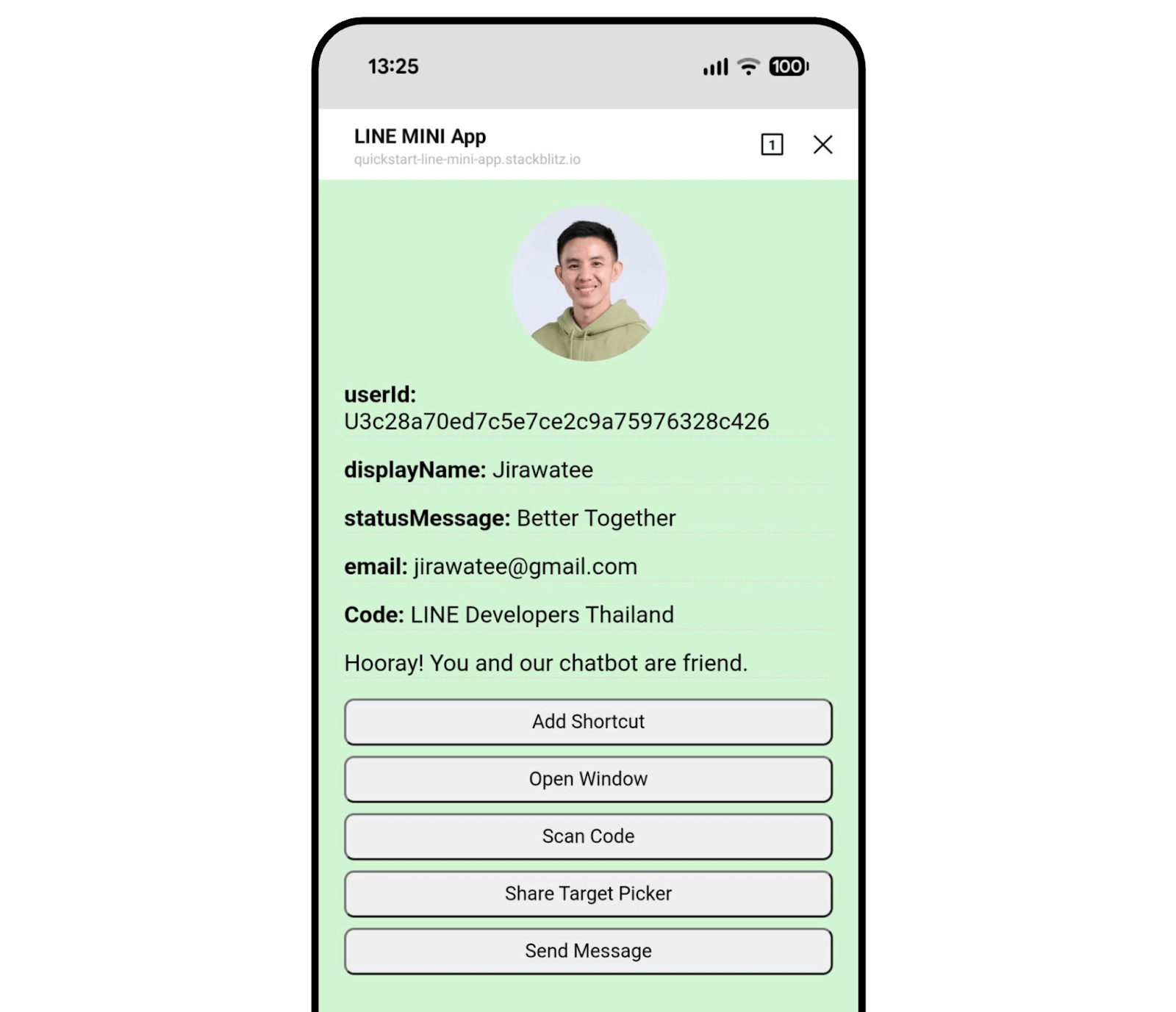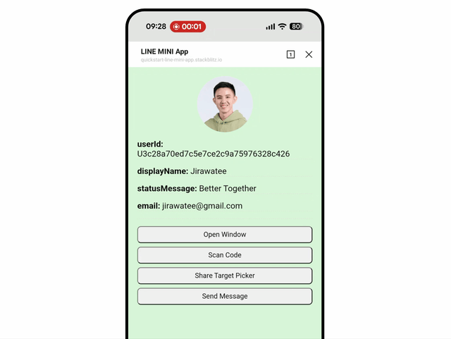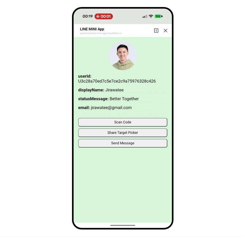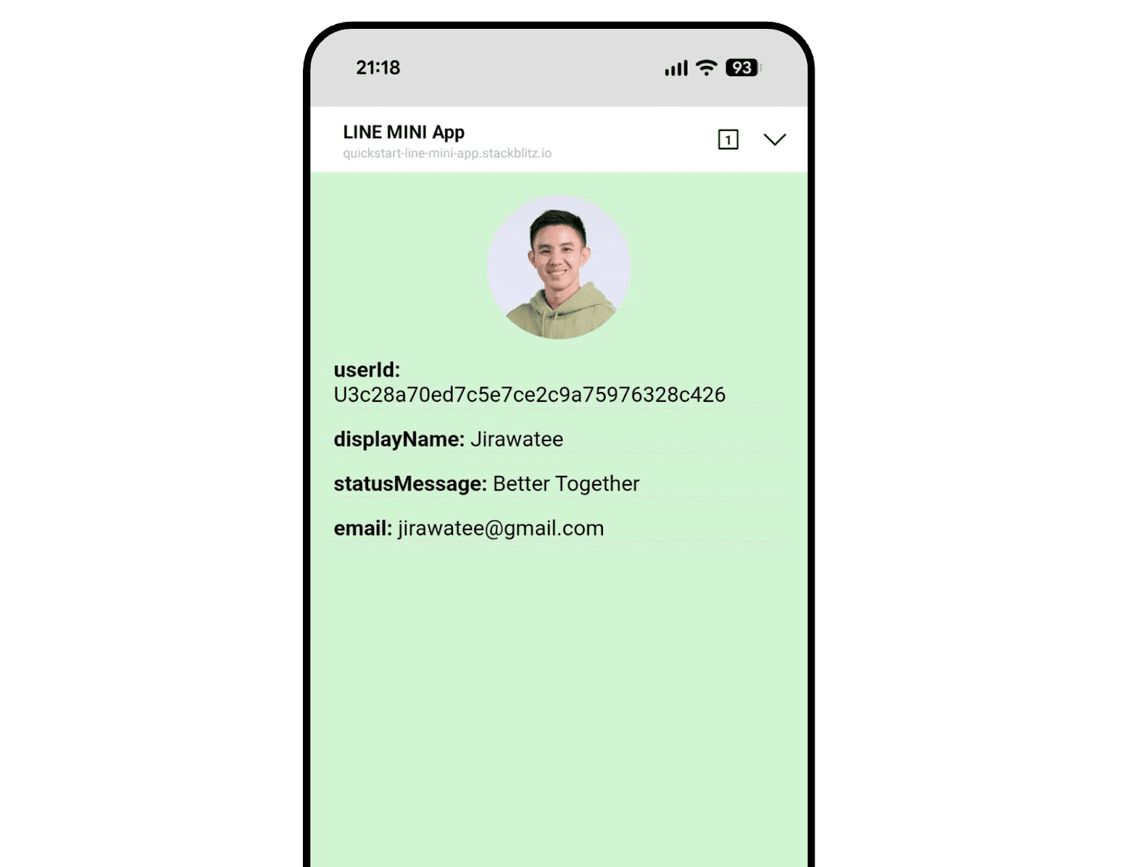 หลังจากที่เราเรียกคำสั่ง liff.init() ไปแล้ว ในกรณีที่เราเปิด LINE MINI App กับแอป LINE บน iOS หรือ Android ตัว LINE MINI App จะทำการ Login ให้อัตโนมติ ซึ่งทำให้เราสามารถเข้าถึงข้อมูลของผู้ใช้ได้ทันทัน