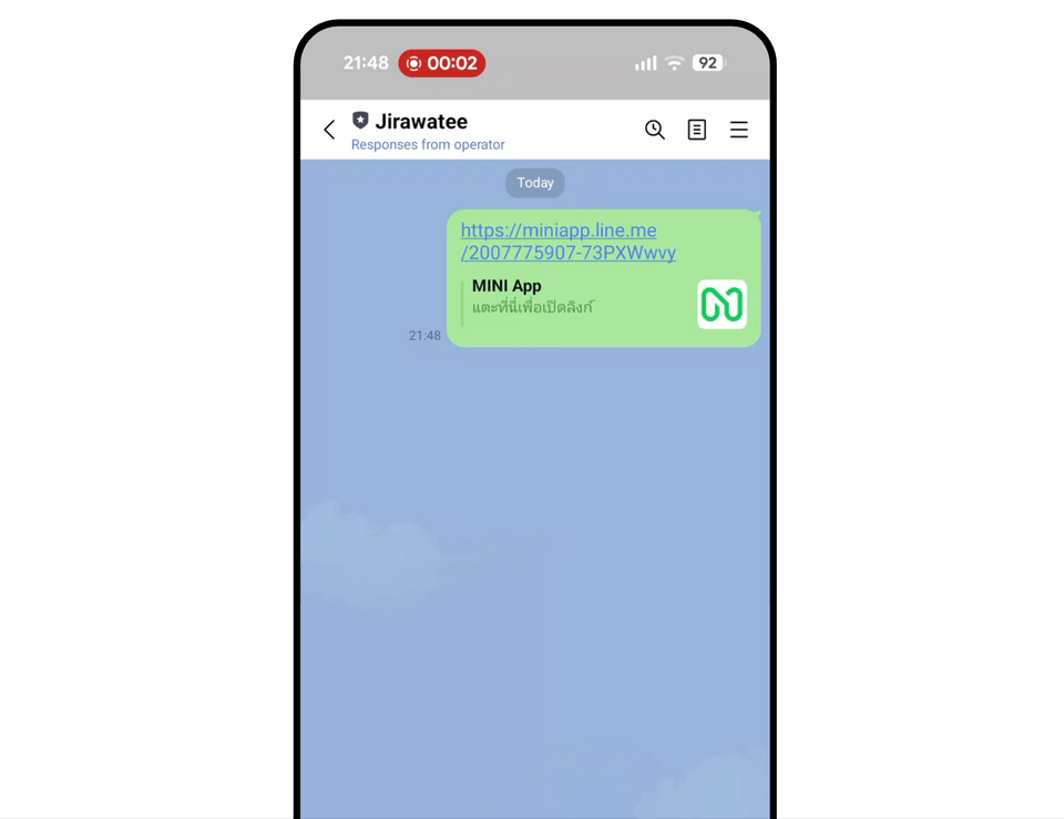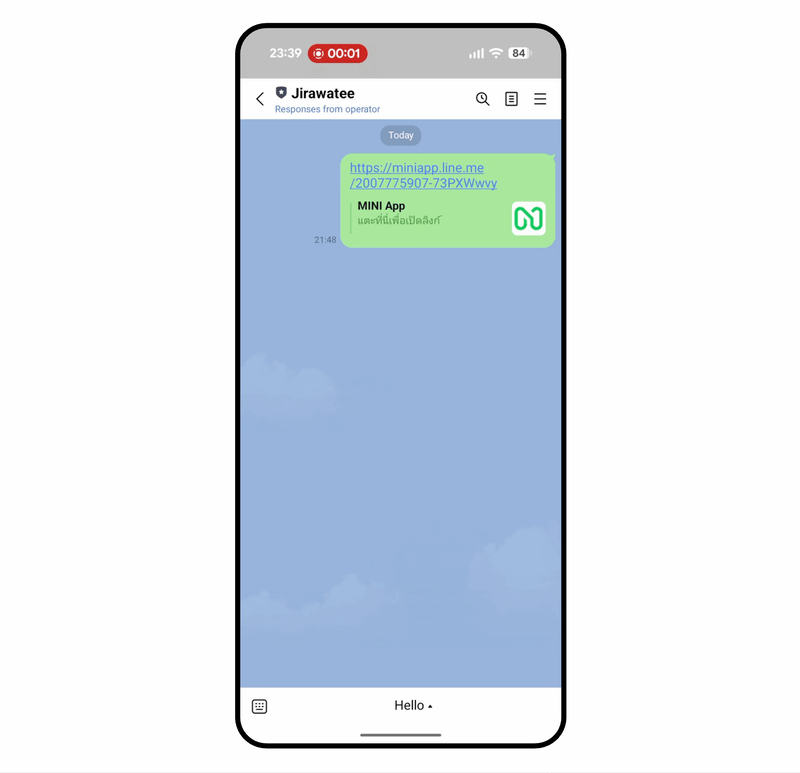 เมื่อเรากดส่งข้อความกลับไปยังห้องแชทเรียบร้อย ตัว LINE MINI App ก็จะปิดตัวเองทันที