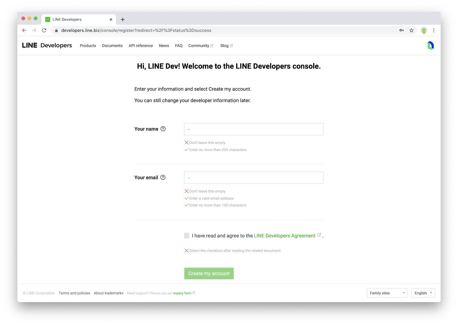 จุดเริ่มขบวนสำหรับการพัฒนาแอปพลิเคชันต่างๆบนแพลทฟอร์มของ LINE คือคุณจะต้องสมัครเป็น LINE Developer ก่อน