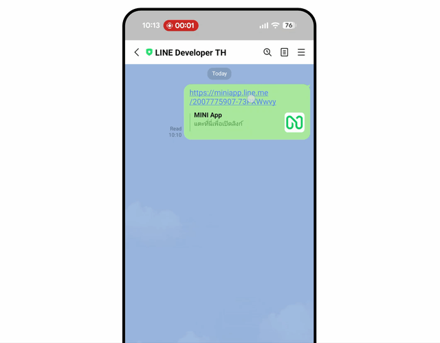 LINE MINI App สามารถส่งข้อความรูปแบบต่างๆใน LINE ไปยังห้องแชทที่ LINE MINI App ถูกเปิดขึ้นมาได้ เช่น Text หรือ Flex message